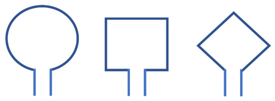 In antenna design based on UWB positioning systems, broadband loop antennas exhibit some key advantages. The structure of a loop antenna, as shown in Figure 2, is usually a metal wire wound into a loop, which can be circular, square, rhombus, etc. Its characteristic lies in the circulation of a current along the axis, which can be equivalently represented as a magnetic dipole situated on that axis [19]. Compared with electric dipoles, magnetic dipole loop antennas are less affected by the human body and are therefore more suitable for use in wearable devices [20]. This means that in UWB positioning systems, especially when the application requires contact with the human body or is worn on the body, the choice of loop antenna is more appropriate.