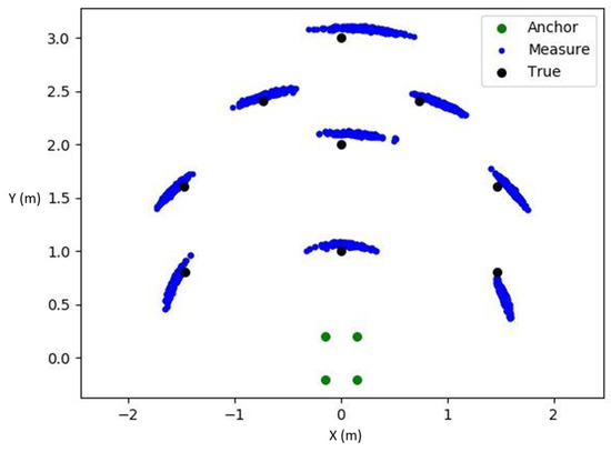 Here, x and y represent the target position to be optimized, m is the station number, and are the coordinates of the station, and is the measured distance. This loss function aims to minimize the mean square error between the measured distance and the target distance.