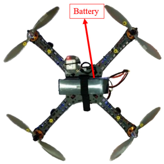Figure 26 shows the installation diagram on the top of the drone. The battery uses a 5800 mAh, 12 V model aircraft battery, which is wrapped around the top of the drone with a fixed strap. According to actual measurements, it can fly for more than 20 min.