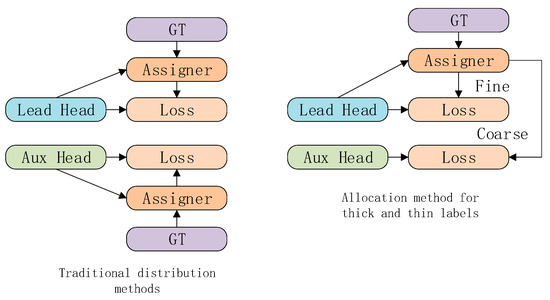 In the Head section, the model employs deep supervision techniques, a departure from conventional methods. It introduces additional auxiliary heads to boost multi-task object detection performance. This novel strategy diverges from the traditional separation of auxiliary and guiding heads. Instead, it uses the guiding head to create hierarchical labels, ranging from coarse to fine. These labels are then individually utilized for training by both the auxiliary and guiding heads, enhancing learning efficiency. This concept is visually represented in Figure 1.