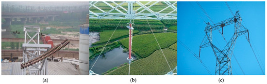 Example Diagram of Dataset. (a) Insulator Flashover. (b) Dropout of Equalizing Ring. (c) Bird’s Nest.