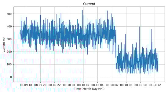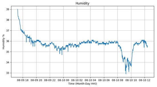 The sensors deployed in this project were configured to take readings at regular intervals every 10 s. Given the nature of the data collection and the need to efficiently transmit these data, especially considering that there are ten edge devices connected to each gateway, sending every individual reading is not feasible. Instead, the data are transmitted every 10 min. A moving average of the sensor readings is calculated to represent the data collected during these 10 min intervals visually.