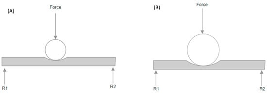Impact of ball bearing size on reaction forces. (A) Smaller ball bearing; (B) larger ball bearing.