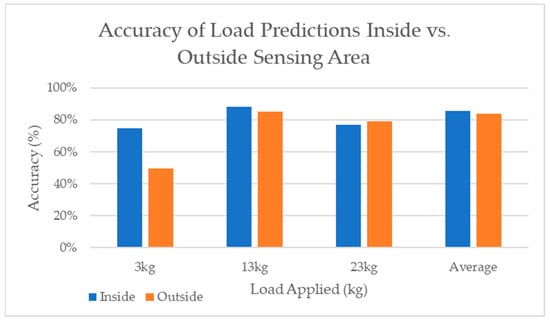 Accuracy of each load prediction inside versus outside of the sensing area.
