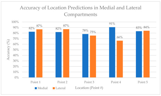 Figure 16 shows the average accuracy of the location predictions for each point in both the medial and lateral compartments, where there was little difference in the accuracy of the location predictions.