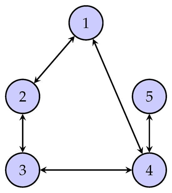 In this section, a numerical simulation is presented to demonstrate the effectiveness of the proposed controller. Consider the networked system consisting of five agents, the Laplacian topology among which is depicted in Figure 1. System matrices are given by (1) with