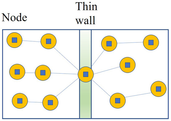 - When nodes are placed inside thin walls, the algorithm randomly deploys nodes on both sides of adjacent walls. Randomness here means that nodes are placed at various points on adjacent walls, but within a defined range, to ensure effective signal transmission with nodes within thin walls. This step introduces a variation factor that reflects real-world conditions, in which nodes can be placed in various locations, depending on the specific requirements and constraints of the building;