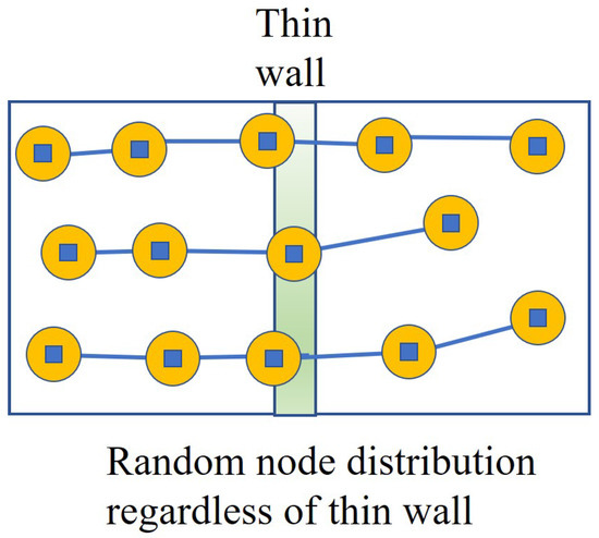 - The first step assumes that there is no wall and randomly deploys nodes in the entire space of the smart building. This random placement reflects the variability in and irregularity of node placement in the real world;