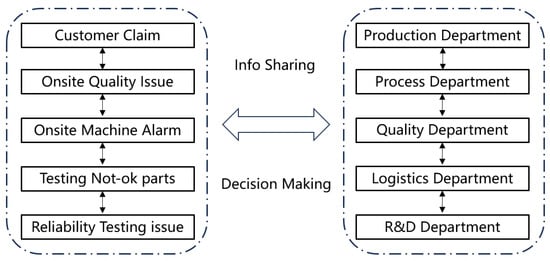 The management of production lines typically encompasses three aspects, namely equipment, personnel, and quality. Quality is becoming an important strategy that determines company’s success and competitiveness []. Any occurrence of quality issues within the production line can result in abandonment. In severe cases, quality issues can even result in line shutdown, making it impossible to satisfy daily production requirements. Moreover, if delivered products exhibit quality problems, not only will product recalls be implied, but also the brand image on the client side becomes compromised and may even affect the survival of the enterprise. To address these concerns effectively, numerous quality management tools are commonly used by most companies, including production part approval process (PPAP), advanced product quality planning (APQP), failure mode and effects analysis (FMEA), and control planning. Quality management permeates throughout the entire product life cycle, encompassing research and development design stages through small batch trial productions to formal mass productions and post-sales support activities. In terms of production line inspections specifically, they are typically categorized based on processes such as incoming parts inspection, line production inspection, finished product function testing, as well as final warehouse inspections. Additionally, automobile manufacturers regularly conduct VDA audits to assess their production processes’ adherence to standards. The detection and resolution of any quality issues at an early stage are crucial for cost savings.