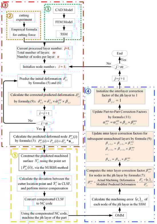 An SSM that is capable of flexible and efficient machining deformation prediction was established as described in the previous section. However, a machining deformation prediction and compensation system that depends solely on SSM is still an open-loop system, and it cannot optimize the subsequent compensation process based on the error information generated during machining. To realize closed-loop control of the deformation compensation system and subsequently improve the precision of end milling of thin-walled parts, this paper proposes an iterative optimization compensation method by incorporating OMM and SSM.