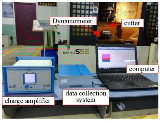 The equipment adopted for the experimental process is shown in Figure 11. The Makino S56 vertical machining center was used for the machining in the experiment. The machining center was also equipped with an MP600 touch probe manufactured by Renishaw for on-machine inspection after machining. The cutting force measuring equipment was a Kistler 9272. The cutting force tests and the subsequent parts machining experiments were carried out on the same machine tool. The machining tool was a φ12 carbide end mill with four teeth.