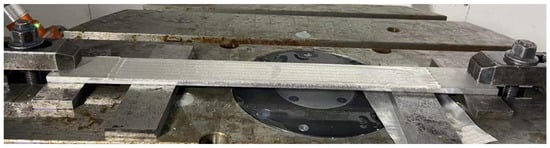 To analyze the impact of the prediction model, uncompensated machining tests were conducted, and the predicted deformation results were compared with those of the actual machining effect. However, this part produced severe chatter during actual machining, resulting in the failure of normal machining. This result may be attributed to the fact that the thin plate part was too long, and the local stiffness in the middle of the part was too low. This effect may be also caused by the resonance due to the proximity of the cutting vibration frequency to the natural frequency of the part. As shown in Figure 16, to solve this problem, we added two pads on both sides of the thin plate part to improve the local stiffness of the part and suppress the impact of the flutter.