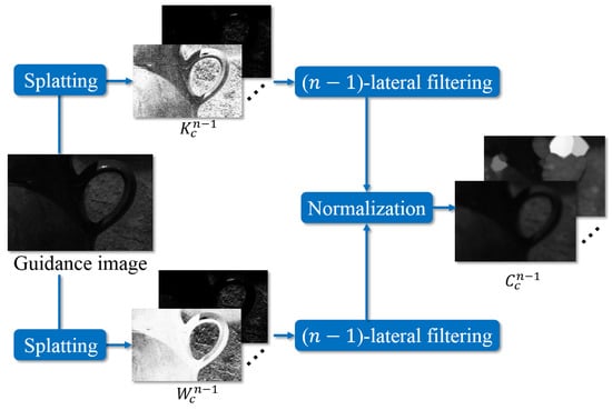 The denominator and numerator in (13) represent -lateral filtering. This indicates that n-lateral filtering has been decomposed into -lateral filtering. Therefore, MF can be decomposed recursively: