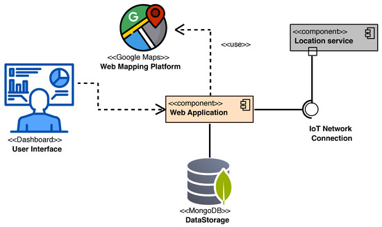 The RESTful APIs provided by the Location service component were exploited to implement a web application, the architecture of which is depicted in the UML component diagram shown in Figure 13.