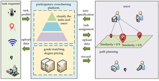 Participatory crowdsensing (PCS) is an innovative data sensing paradigm that leverages the sensors carried in mobile devices to collect large-scale environmental information and personal behavioral data with the user’s participation. In PCS, task assignment and path planning pose complex challenges. Previous studies have only focused on the assignment of individual tasks, neglecting or overlooking the associations between tasks. In practice, users often tend to execute similar tasks when choosing assignments. Additionally, users frequently engage in tasks that do not match their abilities, leading to poor task quality or resource wastage. This paper introduces a multi-task assignment and path-planning problem (MTAPP), which defines utility as the ratio of a user’s profit to the time spent on task execution. The optimization goal of MATPP is to maximize the utility of all users in the context of task assignment, allocate a set of task locations to a group of workers, and generate execution paths. To solve the MATPP, this study proposes a grade-matching degree and similarity-based mechanism (GSBM) in which the grade-matching degree determines the user’s income. It also establishes a mathematical model, based on similarity, to investigate the impact of task similarity on user task completion. Finally, an improved ant colony optimization (IACO) algorithm, combining the ant colony and greedy algorithms, is employed to maximize total utility. The simulation results demonstrate its superior performance in terms of task coverage, average task completion rate, user profits, and task assignment rationality compared to other algorithms.