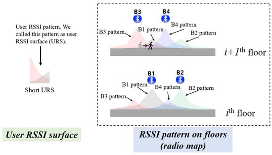 The beacon signal can reach many floors, but it is strongest on the floor it is installed. FLD uses a short RSSI sequence to find out which floor the user is on.