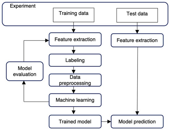 Figure 2 depicts the research process. First, an experiment simulating the construction site environment outside the laboratory is designed, and two sets of IMU data for training and testing purposes are collected experimentally. Then, features are extracted from the training data. These extracted features are labeled with correct answers and fed to the GRU model. After training is complete and the validation criteria are fulfilled, the trained model is considered ready for classifying workers’ movement types. The test data are used to test and evaluate the performance of the model.