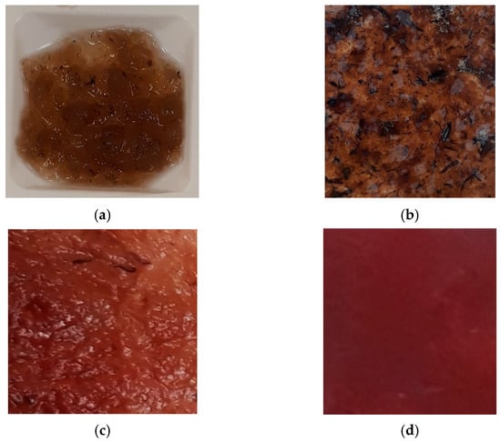 As shown in Figure 2a,b, incompletely purified carrageenan was selected from residues from seaweed plants for this research. As we know, the purification of this substance, like any other, requires additional resources, and this process is not sustainable. The precipitates prepared mixed with iron oxide (III) and glycerol (Figure 3c) were left to dry under room conditions. Properly dried film is flexible, soft, and non-greasy and recovers after compression (Figure 3d). According to experiments, this quality is maintained for at least five months, even without any insulation or laminating of the specimen.