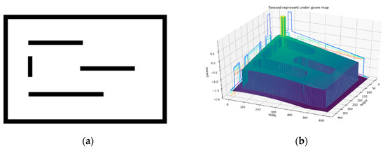 The robot will keep moving closer to the target point while avoiding obstacles to get a higher reward. The reward function of Environment II is shown in Figure 6b.