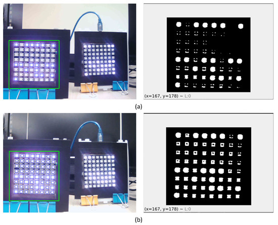 However, the proposed method remains sensitive to changes in brightness, saturation, or contrast of the visual environment. As illustrated in Figure 11, in instances where the background’s brightness is low, the light emitted from the turned-on LEDs can affect the turned-off LEDs, leading to occasional misestimation of the turned-off LEDs as turned-on. Despite its sensitivity to brightness noise, this approach demonstrates the proper detection of turned-on LEDs under average brightness conditions.