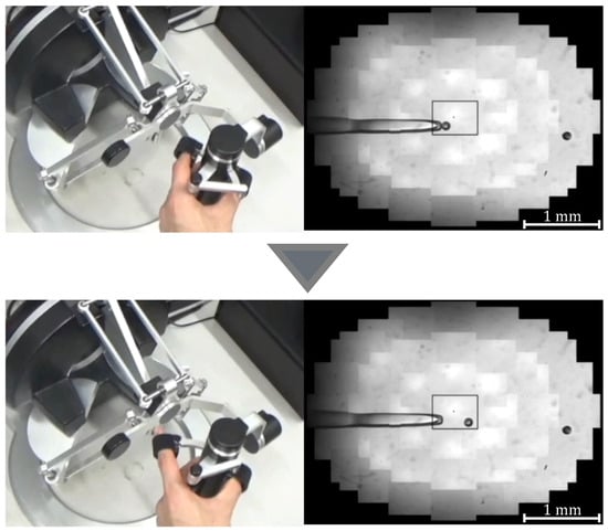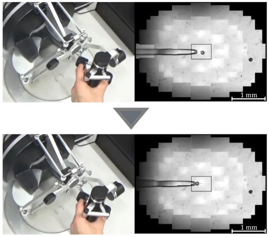 - Aoyama, T.; Takeno, S.; Yokoe, K.; Hano, K.; Takasu, M.; Takeuchi, M.; Hasegawa, Y. Micromanipulation System Capable of Simultaneously Presenting High-Resolution and Large Field-of-View Images in Real-Time. IEEE Access 2023, 11, 34274–34285. [Google Scholar] [CrossRef]