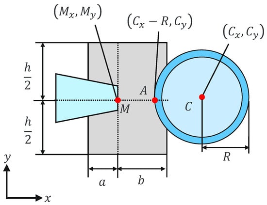 where and are the holding pipette tip coordinates and a, b, and h are constants. This can be explained geometrically as shown in Figure 7 and Figure 8. The holding pipette is considered to be in contact with the cells, as shown in Figure 7. Conversely, when the holding pipette tip is not included in the gray region, as shown in Figure 8, it is judged to be noncontact.