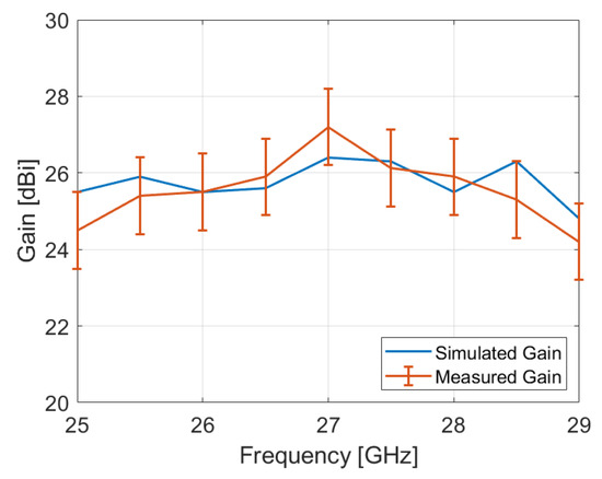 | Gain (dBi) | 23/19 | 38.5/36.3 (Directivity) | 30.7/23.2 | 38.5/35.1 | 23.66 | 27.22 |