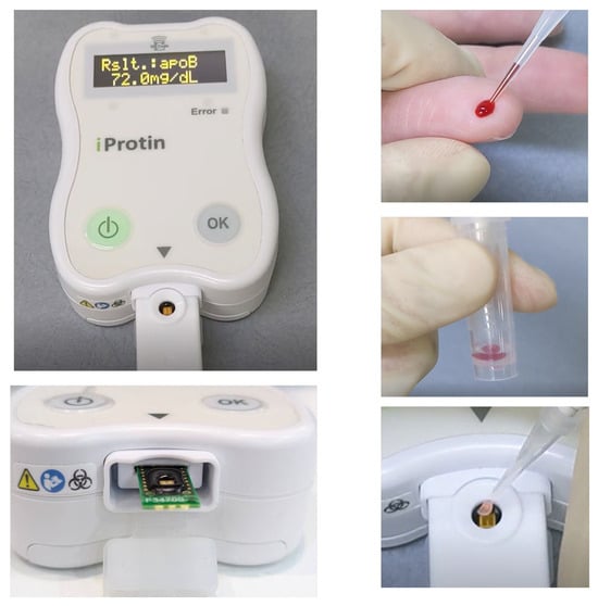Cardiovascular disease (CVD) is a collective term used to describe a group of pathological conditions that affect the heart and blood vessels. These include, but are not limited to, coronary artery disease, heart failure, and stroke. CVD is the leading cause of mortality worldwide for both men and women and across most racial and ethnic groups. In 2020, it was estimated that 19 million individuals died from CVD globally, representing an 18.7% increase from 2010 [1,2]. The early detection and intervention of CVD are essential for the control of the disease and the prevention of serious complications. The monitoring of CVD entails the observation of risk factors, including elevated high blood pressure, cholesterol, and blood sugar levels, as well as the assessment of lifestyle habits such as tobacco use, physical activity, and dietary patterns. Regular physical examinations, blood tests, and imaging tests facilitate the early detection of CVD, thereby enabling prompt treatment and a more efficacious intervention [3]. A point-of-care electrocardiogram (POCT) is an assessment of a patient’s cardiac health and function conducted at the time of treatment, as opposed to sending samples or patients to a centralized laboratory or diagnostic facility. This approach facilitates expedited diagnosis and treatment decisions, particularly in emergency settings. Point-of-care testing (POCT) represents an efficacious methodology for monitoring the progression of cardiovascular status. In contrast to electrocardiography (ECG) or point-of-care ultrasound (POCUS), POCT is more cost-effective on an individual basis and does not necessitate the expertise of a trained professional to interpret the results. Furthermore, POCT has the potential to positively impact health outcomes, particularly in remote, rural, and underserved communities [4]. The Cholestech LDX Analyzer (Abbott, Chicago, IL, USA), the cobas® b 101 system (Roche, Basel, Switzerland), and PixoTest (iXensor, Taipei, Taiwan) are widely utilized point-of-care testing devices that can rapidly test blood lipids and measure total cholesterol, LDL, HDL, and triglycerides. However, there is currently a dearth of point-of-care devices on the market that are specifically designed to measure apolipoprotein B.