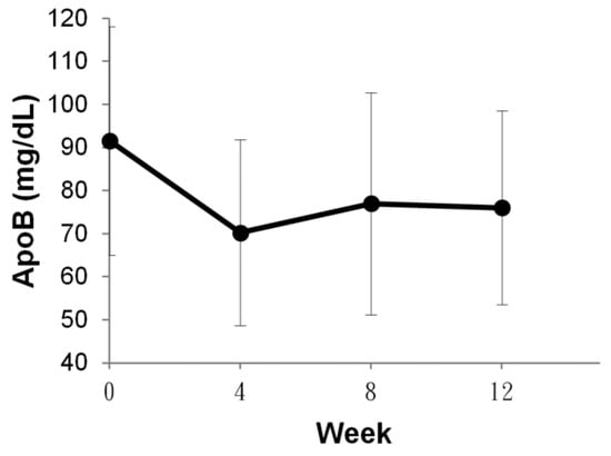 The change of ApoB concentrations at 4, 8, and 12 weeks after the food therapy.