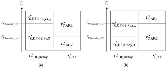 where . Therefore, an optimal DF/AF mode selection criterion differs depending on with respect to and (Figure 2):