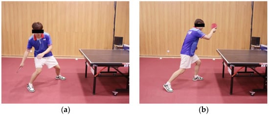 - Iino, Y.; Kojima, T. Kinetics of the upper limb during table tennis topspin forehands in advanced and intermediate players. Sports Biomech. 2011, 10, 361–377. [Google Scholar] [CrossRef]
