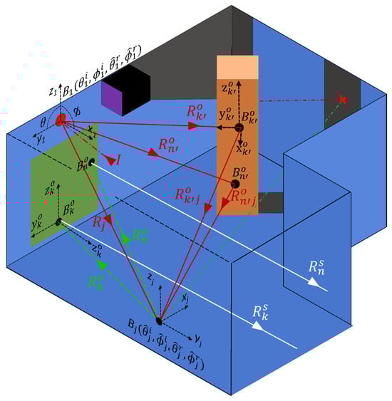 Although NLOS has been realized in several publications, relatively little formalism has been presented to predict the performance of SPAD-based NLOS systems [,,]. Prior works on simulating NLOS systems have explored various approaches, including the use of simulated 3D environments [], simulations of scanning systems [,], and simulations of light cone returns []. However, simulating the temporal distribution of photon detections at a sensor for scenarios featuring multiple objects in room-like environments remains challenging. Furthermore, it has been shown that once the temporal distribution of photon detections is known, SPAD data can be accurately simulated []. Data of this type can then be used to refine the components of imaging systems, develop novel reconstruction algorithms, and create machine learning data sets for training neural networks.