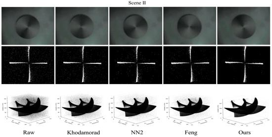 In the denoising results shown in Figure 6 and Table 1, our algorithm filters out 19.09% of the events in Scene I, which is higher than 17.34% for NN2, 14.87% for the Feng filter, and 8.66% for the Khodamoradi filter. In scene II, our algorithm filters out 19.04% of the events, higher than 16.09% for NN2, 13.9% for the Feng filter, and 9.57% for the Khodamoradi filter. The RIN and NIR values of this paper’s algorithm in Scene I do not show a significant advantage due to the discontinuous and irregular distribution of the background noise region, but the 2D plots and spatio-temporal images show that our algorithm filters out more noise compared to other algorithms. This suggests that the reliability of RIN and NIR denoising assessment based on manual selection of background noise regions still needs to be enhanced.
