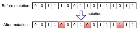 Mutation occurs after the crossover operation. This process involves randomly altering one or more genes to generate new offspring, thereby creating new adaptive solutions and avoiding local optima. Specific mutation operations are illustrated in Figure 7. Over multiple generations, the GA converges to the optimal solution.