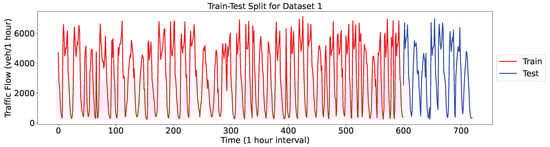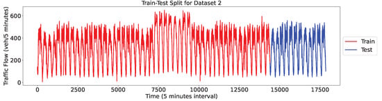 Despite the potential of 5G-enabled ITS, traffic flow prediction remains a challenging task due to the non-stationary nature of traffic data, which are influenced by a variety of factors, including weather conditions, human activities, and unforeseen events [1]. These factors introduce fluctuations that reduce prediction accuracy. Therefore, preprocessing is essential to ensure satisfactory prediction accuracy. Techniques for processing time-series data—including decomposition—are commonly used for this purpose, with popular methods including wavelet decomposition, empirical mode decomposition (EMD), and variational mode decomposition (VMD). Wavelet decomposition splits data into different frequency modes to extract traffic flow information; however, selecting an appropriate wavelet basis can be challenging [2,3,4]. EMD adaptively decomposes data to enhance predictive performance without requiring a selection of the number of modes; however, it can cause endpoint effects and mode mixing [5,6,7]. VMD, introduced by Dragomiretskiy in 2014, is a nonrecursive, adaptive, and quasi-orthogonal method [8]. Several of the prior studies [9,10,11] have also shown that VMD effectively solves modal aliasing and improves traffic flow prediction accuracy.