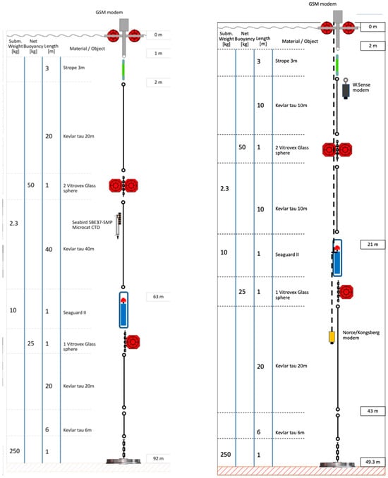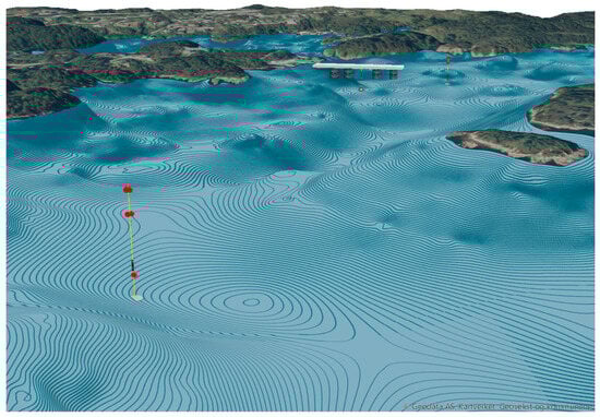 The positions in the water-column by the Seaguard II and Seabird in the two different rigs are shown in Figure 2. The geographical position is given in Figure 3, and the bathygraphy of the area is shown in Figure 4. The positions are adjustable according to the experimental setup requirements. The data are transferred to the SFI Smart Ocean Data Exploration portal [9] (Figure 5). Data transmission and processing are explained below.