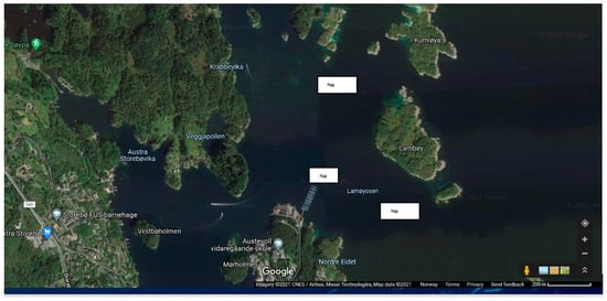 The following sections (Section 2, Section 3, Section 4, Section 5, Section 6, Section 7, Section 8, Section 9 and Section 10) describe both the methods, equipment and the preliminary results from the experiments with sensors, underwater communication and data treatment. Section 11 is a discussion on the concepts tried so far, and on the concept of a marine large-scale facility for testing sensors and wireless underwater communication for use across sectors.