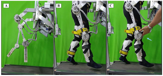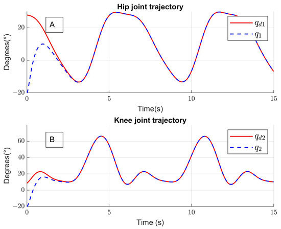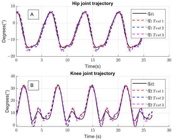 - In test A, the exoskeleton is used to follow the desired trajectory for gait rehabilitation (https://youtu.be/g3pz0G4x_aw accessed on 20 September 2024).
