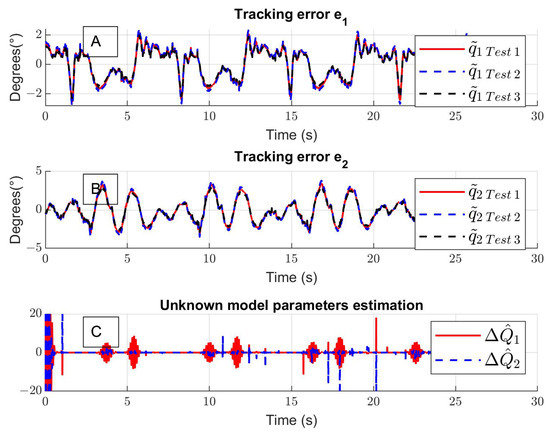 - In test C, external disturbances are added to the system and are rejected by the controller, so the robot follows the desired trajectory (https://youtu.be/kjzzASk1yII accessed on 20 September 2024).