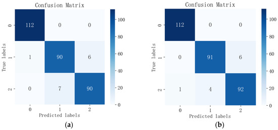 where , and are the numbers of samples correctly categorized in each category, and , and are the numbers of samples incorrectly categorized in each category. A confusion matrix is a visualization tool that presents the model classification results and helps us to understand the strengths and weaknesses of the model in classifying samples in each category. The kappa coefficient is a measure based on the confusion matrix, and, unlike the OA, which only takes into account correctly categorized samples, it also takes into account the effect of incorrectly categorized samples, and it is calculated as follows: