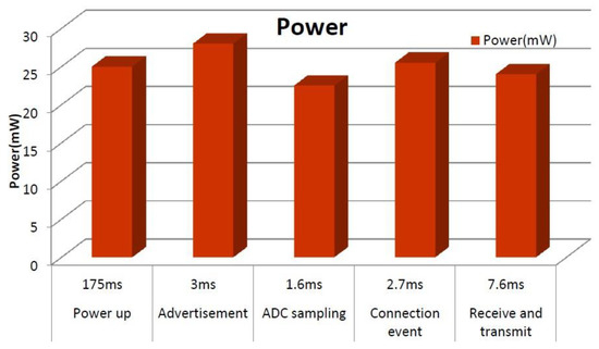 Measured power consumption of the BLE module for each operation stage.