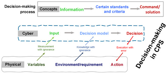 The development of cyber–physical systems (CPSs) and the Internet of Things (IoT) have enabled real-time measuring and analyses of more and more parameter data in the manufacturing industry at an acceptable cost, stimulating the development of increasingly advanced autonomous decision-making processes [1,2]. Autonomous manufacturing systems rely on advanced, big, data-driven, computer-based decision-making methods to achieve high production performance, especially in poor working environments. However, as shown in Figure 1, when detection, decision models, and execution are biased, the entire control process will face unknown responses from physical entities.