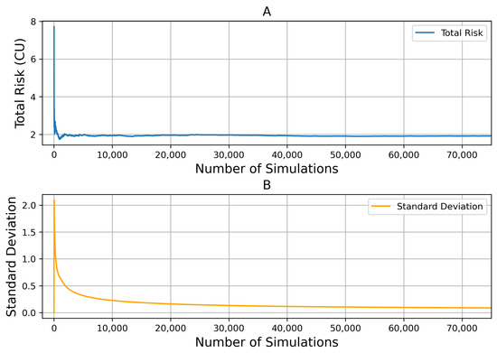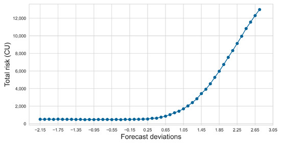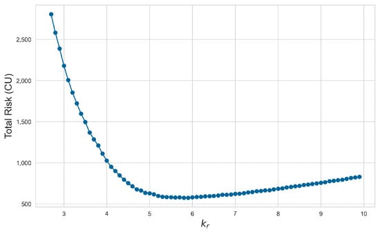 In the next simulation substep, we selected the sensor with the highest measurement deviation of 2.75 and incorporated this into the risk simulation for parameter optimization. It can be concluded from Figure 12 that when , the expected risk faced by the system is minimized.