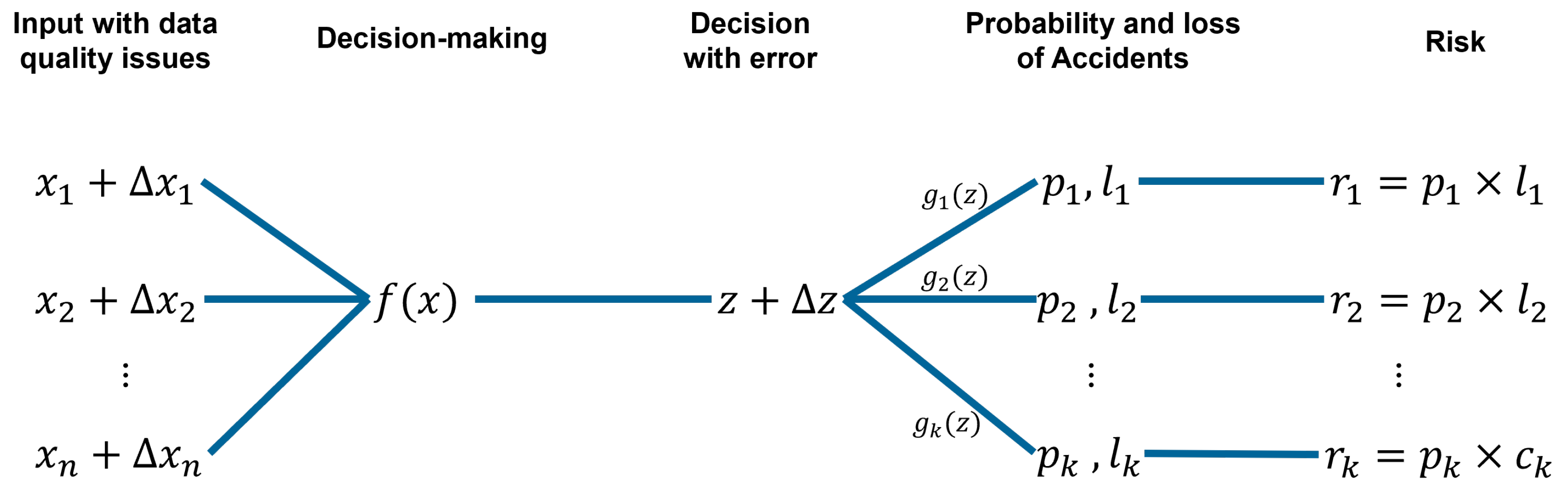 In the current decision-making risk assessment, the primary areas of research focus on investment [17,18], policy development [19,20], and project management [21,22]. However, there is a significant gap in research addressing the quality of decision input data within the field of risk assessment. Comprehensive studies that consider data quality, decision biases, and their impact on risk assessment are notably scarce. This underscores the urgent need for real-time evaluations of how data quality issues influence risks in the continuous decision-making process.