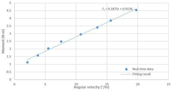 Slewing experiments with different speeds were designed to obtain the relationship between moment and angular velocity, as shown in Table 4. The moments and angular velocities were fitted as shown in Figure 6. Therefore, .