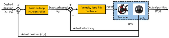 In recent years, the application of USVs in ocean space has received increasing attention [1,2,3]. A USV is an intelligent, multifunctional surface platform controlled by remote control or autonomous navigation [4]. It plays an important role in the fields of marine resources exploration, maritime patrol, and meteorological observation. In order to enhance the sustainable development of marine resources through the utilization of USVs, research on the control of USVs is particularly important [5]. Currently, the motion research of USVs includes heading control [6], path following control [7], and trajectory tracking control [8], among which, the correlation between heading control and path following is more widely studied.