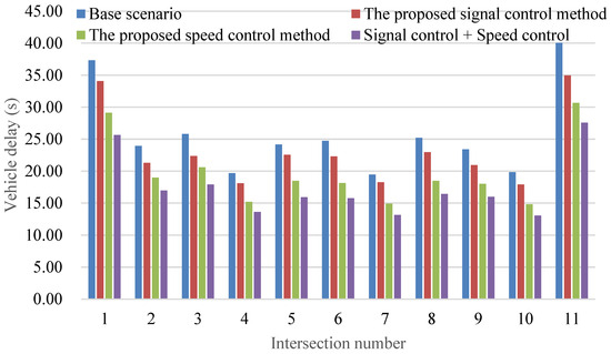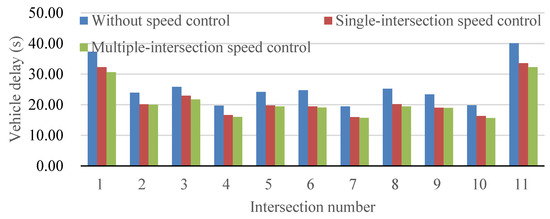 Figure 17. Comparison of vehicle delay at intersections under different control methods.