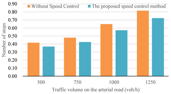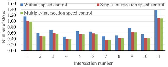 Figure 12. Comparison of the number of vehicles stops with different speed control methods.