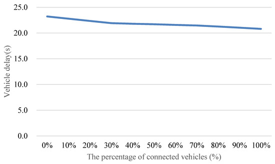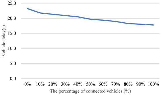 Figure 15. Comparison of average vehicle delay with different penetration rates of connected vehicles.