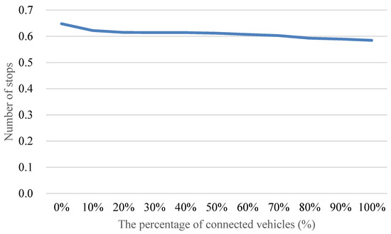 Figure 16. Comparison of the number of vehicle stops with different penetration rates of connected vehicles.